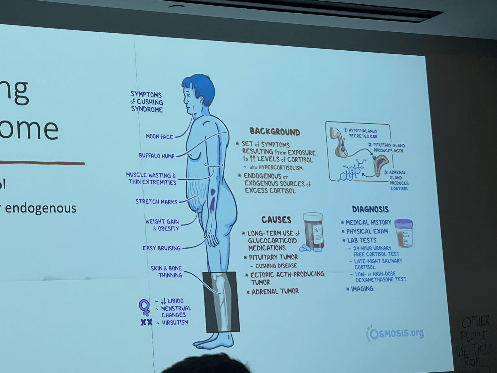 Cushing Syndrome : Excess cortisol, Exogenous or endogenous.