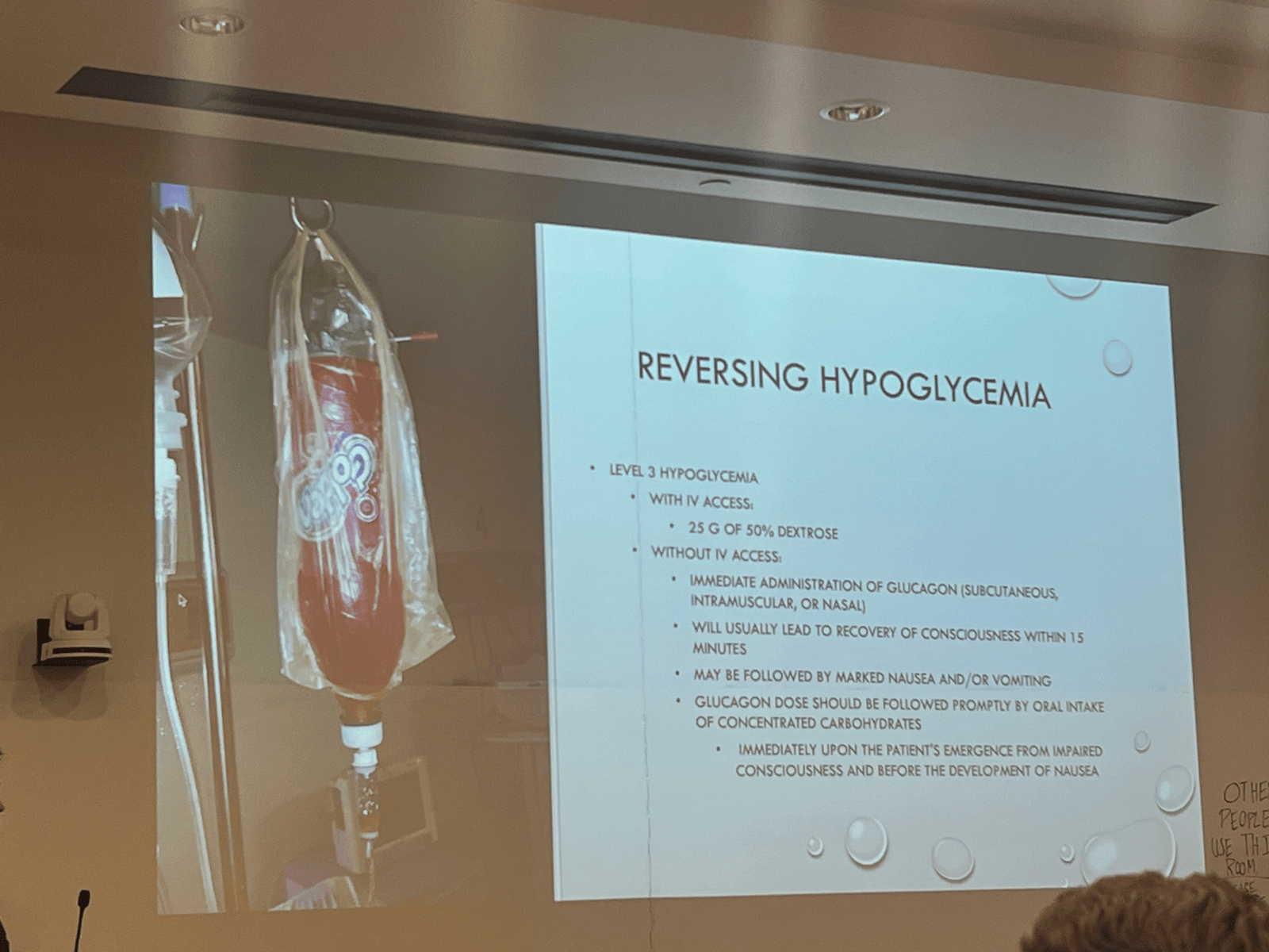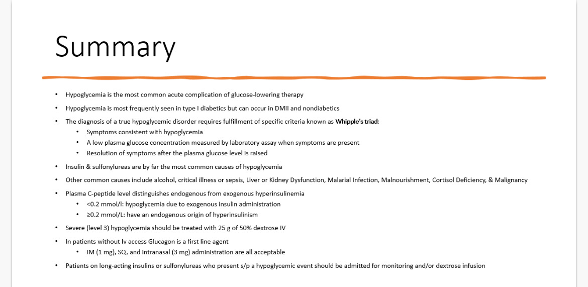 Hypoglycemia treatment : glucose, glucagon, Octreotide ( if on sulphonylureas)
